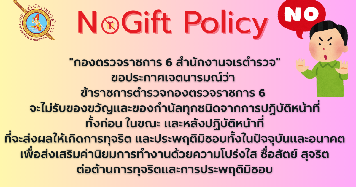 เจตนารมณ์ที่จะไม่รับของขวัญและของกำนัลทุกชนิดจากการปฏิบัติหน้าที่ (No Gift Policy)