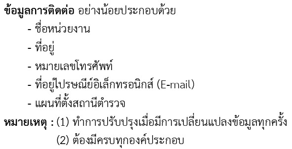 Home » มาตรฐาน ITA » ตัวชี้วัดที่ 9 การเปิดเผยข้อมูล » ตัวชี้วัดย่อยที่ 9.1 ข้อมูลพื้นฐาน » การประชาสัมพันธ์และปฏิสัมพันธ์ข้อมูล » O5 ข้อมูลการติดต่อ และช่องทางการรับฟังความคิดเห็น
